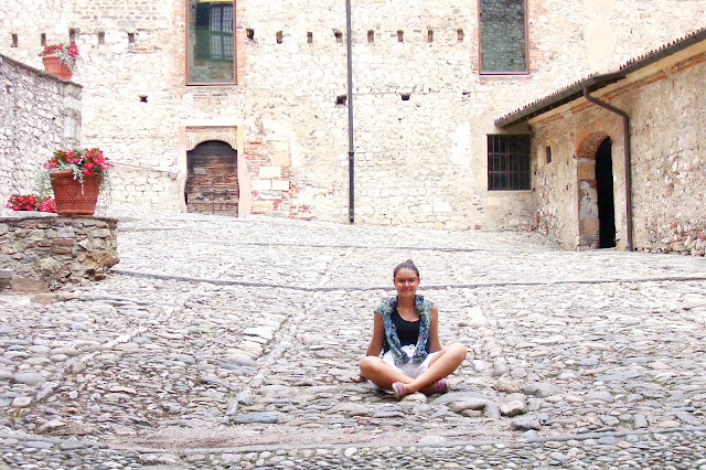 One of the most beautiful things we did during our holiday in Arona was doing an exciting trip on the other bank of the lake: we visited the city of Angera and its amazing fortress. We left Arona in the morning and after a short walk along the coast drinking cappuccino, we took the ferry boat. It was a three floors-boat and obviously we sat on the last floor that was open: it was a bit cloudy and windy, so my hair was really 'swisshing' (Yeah, it was real. No fan trick :P) and ruffled in all the photos! But the view from the ferry was really amazing and unfortunately the cross was really short, only ten-fifteen minutes!
